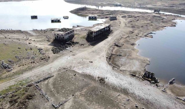 Yozgat'ta bulunan Gelingüllü Barajı'nda geçtiğimiz yıl ve kış aylarında yaşanan kuraklıkla birlikte su seviyesinin düşmesi sonucu gün yüzüne çıkan eski köy yerleşkesi, bu yıl etkili olan kar yağışı ve ardından gelen yağmurla yeniden sular altında kaldı. İki farklı döneme ait görüntüler dron kamerasıyla kaydedilerek barajdaki değişim gözler önüne serildi.