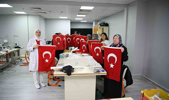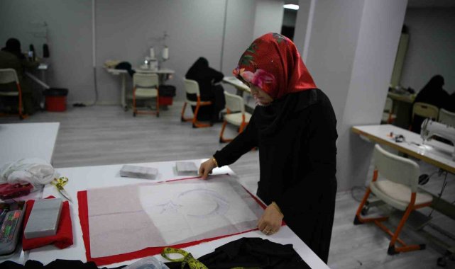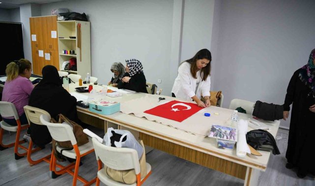 Çayırova'da dikiş kursunda eğitim alan kadınlar, 29 Ekim Cumhuriyet Bayramı öncesinde dikiş makinelerinin başına geçti.