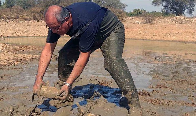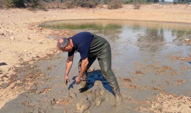 Kurak geçen aylar ve küresel iklim değişikliği sonrası kuruyan Bodrum Pınarlıbelen Mahallesindeki gölette bulunan ve ölmek üzere olan Sazan balıkları muhtarın talebi üzerine Muğla Tarım ve Orman İl Müdürlüğü Balıkçılık Su Ürünleri Şube Müdürlüğü ekipleri tarafından başka bir gölete taşındı.