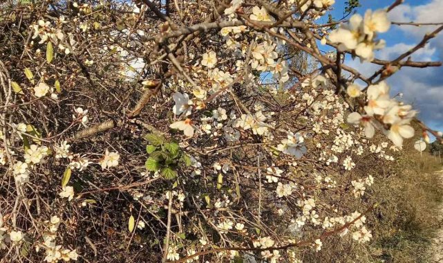 Aydın'ın Kuşadası ilçesinde bu yıl bahar erken gelirken 2025 yılının ilk ayı sona ermeden kış ortasında badem ağaçları çiçek açtı.