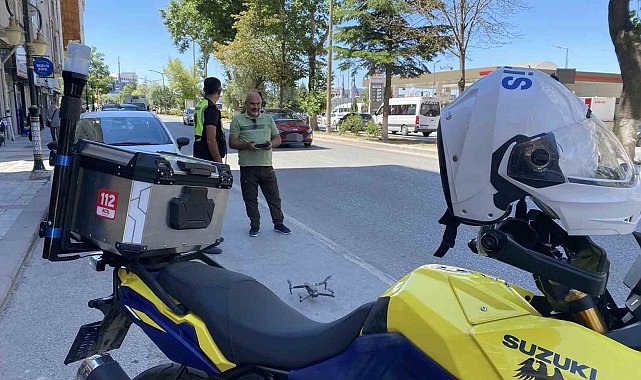 Kütahya'da dron destekli trafik denetimi