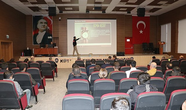 Kütahya İl Emniyet Müdürlüğü Bomba İmha ve İnceleme Şube Müdürlüğü ekipleri tarafından emniyet personeline yönelik "İntihar saldırılarının tespiti ve alınacak önlemler" konulu bilgilendirme semineri düzenlendi.