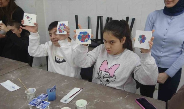Kütahya Yavuz Sultan Selim Özel Eğitim Uygulama Okulu'nda özel öğrenciler için çini boyama etkinliği düzenlendi.
