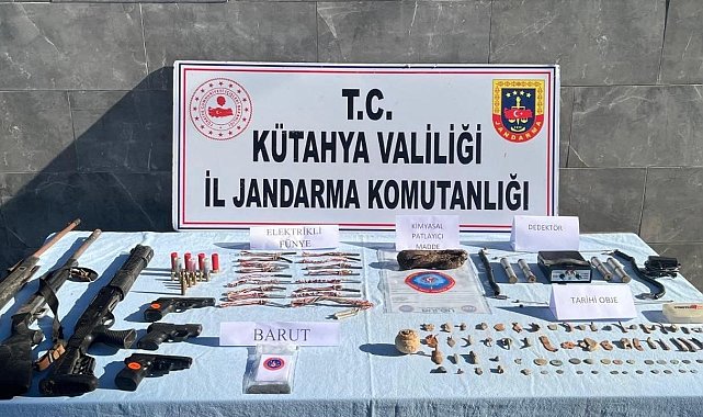 Kütahya İl Jandarma Komutanlığı ekipleri, düzenledikleri operasyonda çok tarihi eser ve patlayıcı madde ele geçirildi.