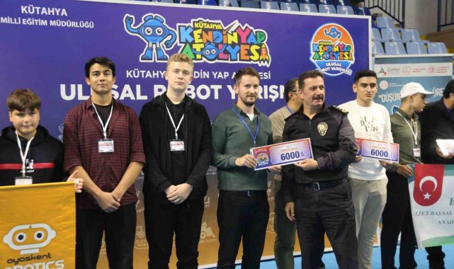 Kütahya'da düzenlenen Ulusal Robot Yarışması'nda dereceye giren öğrenciler, düzenlenen törenle ödüllerini aldı.Dumlupınar Kapalı Spor Salonu'nda "Kendin Yap Atölyesi" tarafından organize edilen yarışmaya, 16 ilden 400 öğrenci katıldı. Gün boyu süren etkinlikte öğrenciler kendi tasarladıkları robotlarla yarıştı.Program sonunda dereceye giren öğrencilere ödülleri, Vali Yardımcısı Faruk Bekarlar ve protokol üyeleri tarafından takdim edildi.Yarışmaya Kütahya'nın yanı sıra Eskişehir, Denizli, İzmir, İstanbul, Manisa, Bolu, Bursa, Uşak, Ankara, Isparta, Bilecik, Kastamonu, Afyonkarahisar, Konya ve Antalya'dan öğrenciler katıldı.Kütahya İl Milli Eğitim Müdürü Mustafa Yılmaz, organizasyona katılan tüm öğrencilere ve öğretmenlerine teşekkür ederek, "Gençlerimizin teknolojiye olan ilgisi ve üretkenliği bizleri gururlandırıyor" dedi.