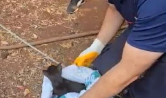 Osmaniye'de kullanılmayan 18 metrelik su kuyusuna düşen yavru kediyi itfaiye personeli, temiz hava solunum tüpü kullanarak kurtardı.