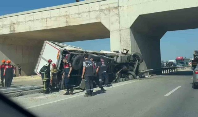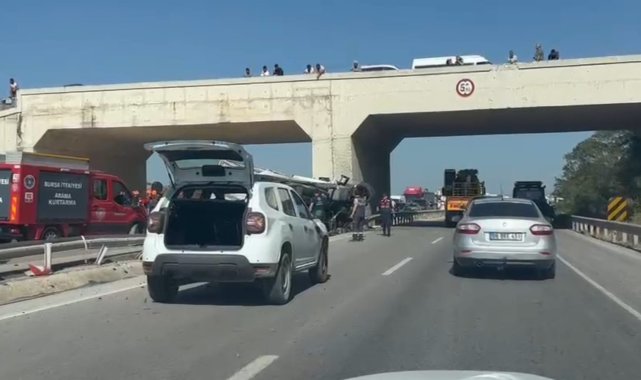 Bursa'nın Mustafakemalpaşa ilçesinde fireni patlayınca köprü ayaklarına çarpan kamyonun sürücüsü hayatını kaybetti.