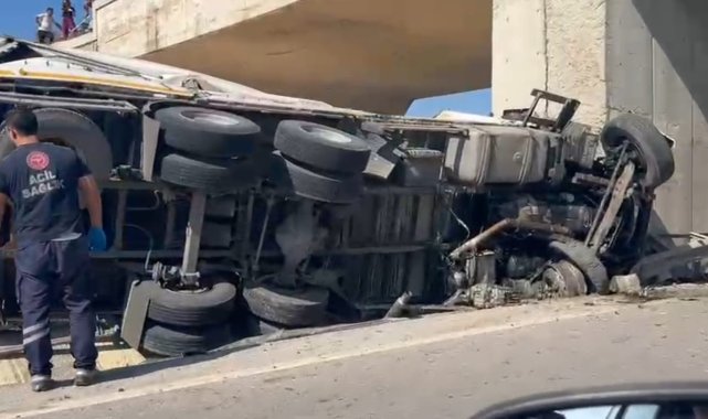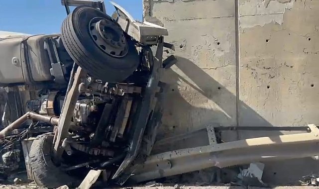 Lastiği patlayan kamyon köprü ayağına çarptı sürücü öldü