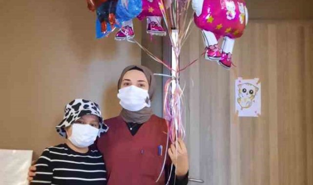 Lösemi hastası küçük çocuk, balonlarla taburcu oldu
