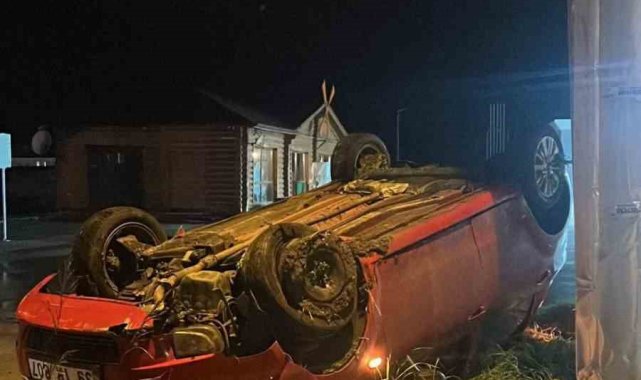 Lüleburgaz'da takla atan otomobildeki 2 kişi yaralı olarak kurtuldu