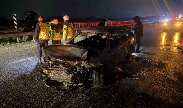 Lüleburgaz'da zincirleme kaza: 2 yaralı, 1 otomobil yandı