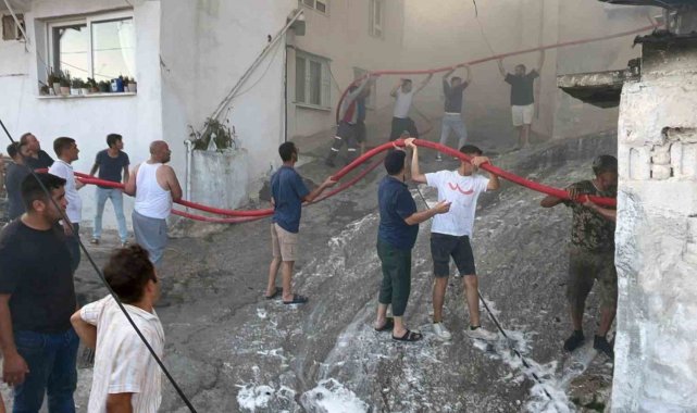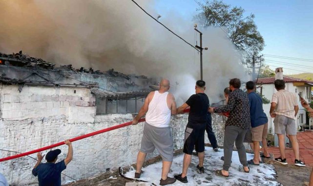 Muğla'nın Menteşe ilçesinde tek katlı ahşap evde çıkan yangını söndürmek için mahalle sakinleri, su hortumlarını eve ulaştırmak için zincir oluşturarak itfaiye ekiplerine destek verdi.