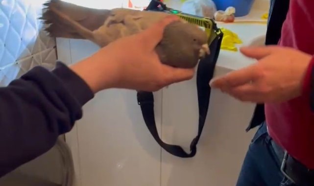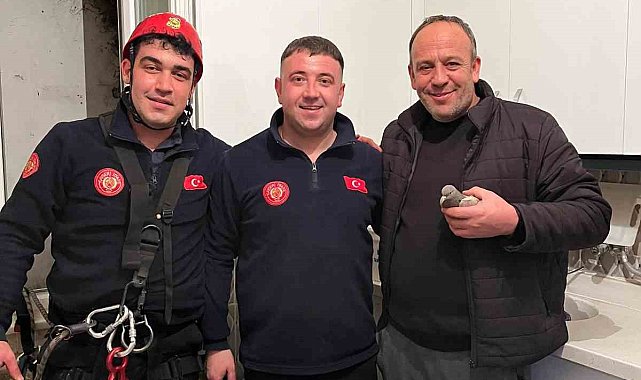 Mahsur kalan güvercini özgürlüğüne itfaiye kavuşturdu