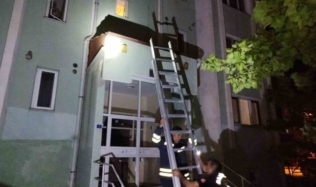 Erzincan'da binanın sundurmasında mahsur kalan kedi itfaiye ekiplerince kurtarıldı.