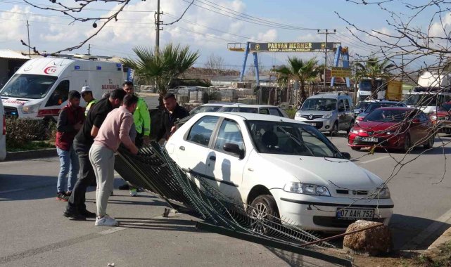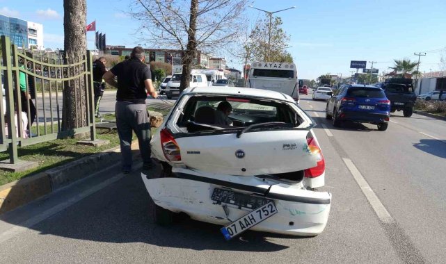 Antalya'da makas attığı iddia edilen aracın çarpması sonucu karşı şeride geçen otomobilde bulunan biri çocuk 2 kişi yaralandı. Kaza anı ise bir iş yerinin güvenlik kamerasına saniye saniye yansıdı.Kaza, saat 13.50 sıralarında Antalya'nın Kepez ilçesi Göksu Mahallesi Gazi Bulvarı üzerinde meydana geldi. Edinilen bilgiye göre, süratli ve makas atarak geldiği iddia edilen Ali N. idaresindeki 07 BFE 845 plakalı Volkswagen marka otomobil, önce Erkan Burak. A.'nın idaresindeki 48 DM 888 Volkswagen araca, ardından da Yusuf K.'nin kullandığı 07 AAH 752 plakalı Fiat marka otomobile çarptı. Çarpmanın etkisiyle aracın direksiyon hakimiyetini kaybeden Yusuf K., refüjdeki bariyerleri aşarak karşı şeride geçti.Biri çocuk 2 yaralıKazanın diğer sürücüler tarafından 112 Acil Çağrı Merkezi'ne bildirilmesi ile olay yerine çok sayıda sağlık ekibinin yanı sıra itfaiye ve polis ekipleri sevk edildi. Kısa sürede olay yerine gelen sağlık ekipleri kazayı hafif yaralı olarak atlatan Yusuf K. ve 7 yaşındaki Mustafa K.'yi ilk müdahalelerinin ardından ambulansla hastaneye kaldırdı. Kaza nedeniyle yolun her iki yönünde de uzun araç kuyrukları oluşurken, trafik ekipleri yolu açmak için büyük çaba harcadı.Karşı şeride geçtiBariyerleri aşarak karşı şeride geçen otomobil vatandaşlar ve trafik ekipleri tarafından düzeltilmesinin ardından çekiciyle kaldırıldı. Öte yandan kaza anı bir iş yerinin güvenlik kamerasına saniye saniye yansıdı. Görüntülerde çarpma sonrası aracın direksiyon hakimiyetini kaybeden 07 AAH 752 plakalı otomobilin savrularak geri geri bariyerleri aşması ve karşı yöne geçmesi yer aldı. Kaza anında karşı yönden gelen araç trafiğinin az olması muhtemel bir facianın önüne geçti.Olayın şokuyla gözyaşlarına boğulduKaza sonrası araçlardan bulunan küçük bir kızın yaşadığı korku nedeniyle gözyaşı döktüğü ve annesinin sarılarak kızını teselli ettiği görüldü. Kazayı gören araç sürücülerinden Ramazan Bozan, aracın makas atarak geldiğini belirterek, "Şurada ilk önce Passat'a çarptı. Sonra Fiat'a çarparak karşı şeride attırdı. Yaralılar vardı hastaneye gittiler. İçlerinde bir tane de çocuk vardı" dedi. Araçların bulunduğu yerden kaldırılmasının ardından yoldaki trafik açıldı.