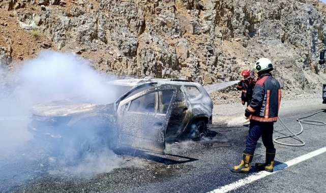 Malatya-Çelikhan yolunda seyir halindeyken alev alan araca itfaiye ekipleri müdahale etti, yangında maddi hasar oluştu.