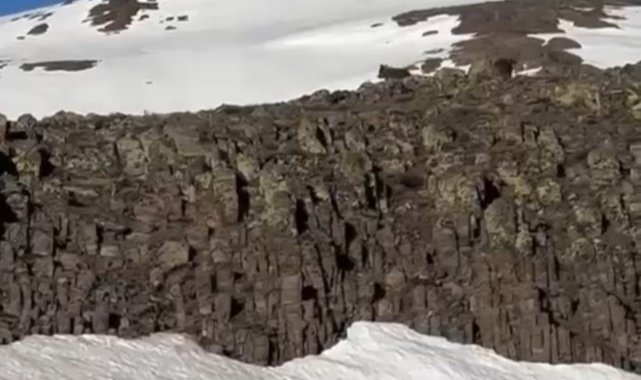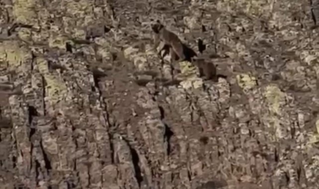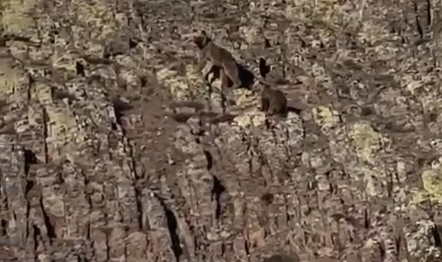 Malatya'da karla kaplı dağlık alanda anne ayı ve yavrusu kameralara yansıdı.Malatya'nın Hekimhan ilçesi kırsalında doğada dikkat çeken bir an yaşandı. Karla kaplı dağlık alanda yavrusuyla birlikte dolaşan bir ayı, bölgede doğa yürüyüşü yapan vatandaşlar tarafından görüntülendi.Vatandaşları fark eden anne ayı ve yavrusu bir süre sonra dağın zirvesine doğru ilerleyerek gözden kayboldu.