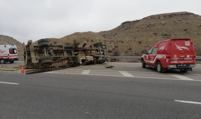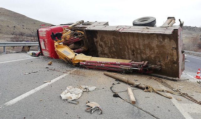 Malatya'nın Darende ilçesinde sürücüsünün kontrolünden çıkan vinç yan yatarak devrildi. Kazada 1 kişi yaralandı.