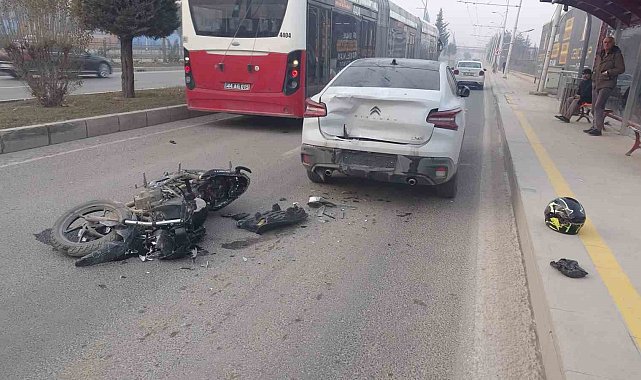 Malatya'da otomobille çarpışan motosikletin sürücüsü yaralandı.Kaza, 08.30 sıralarında Malatya-Ankara karayolu üzeri İstasyon kavşağı mevkiinde meydana geldi. Edinilen bilgilere göre, Ankara yönüne seyreden 44 AS 403 plakalı Citroen marka otomobil ile aynı yönde ilerleyen 44 AHJ 355 plakalı motosiklet çarpıştı. Kazada motosiklet sürücüsü yaralandı.Yaralı sürücünün hastaneye kaldırıldığı kazayla ilgili inceleme başlatıldı.
