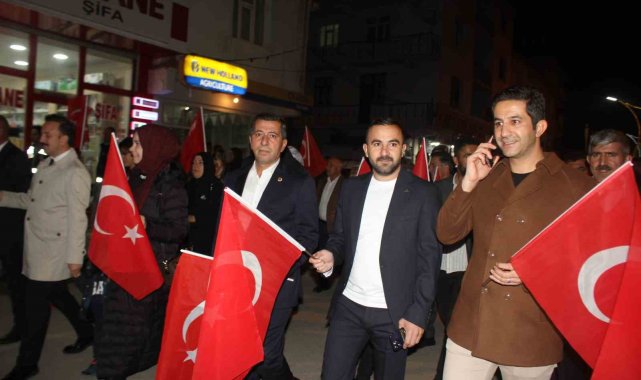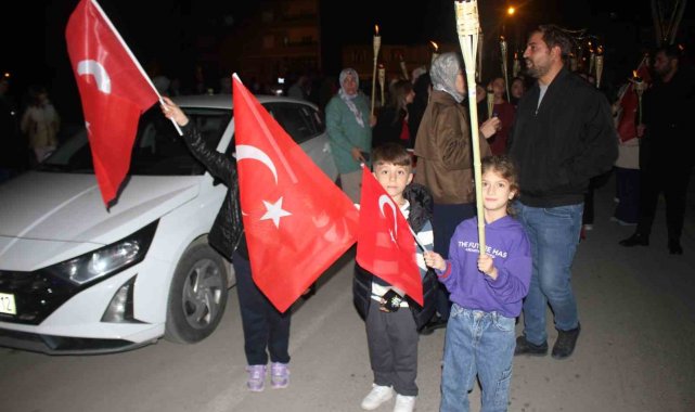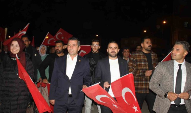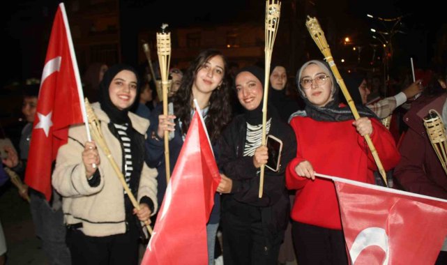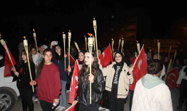 Muş'un Malazgirt ilçesinde Cumhuriyet'in 102. yılı kutlamaları kapsamında fener alayı yürüyüşü yapıldı.