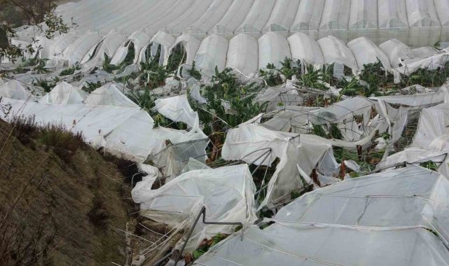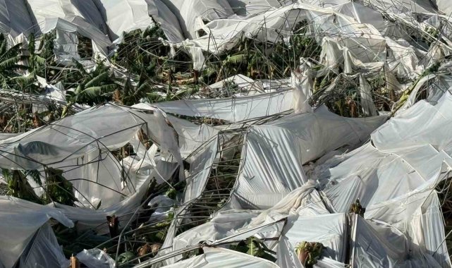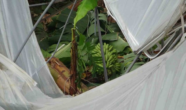 Antalya'nın Manavgat ilçesinde geçtiğimiz Cumartesi günü meydana gelen sağanak yağış sırasında oluşan hortum, muz seralarında ağır hasara yol açtı. Güvenlik kameralarına yansıyan görüntülerde hortumun şiddeti ve seraların gördüğü zarar açıkça gözler önüne serildi.