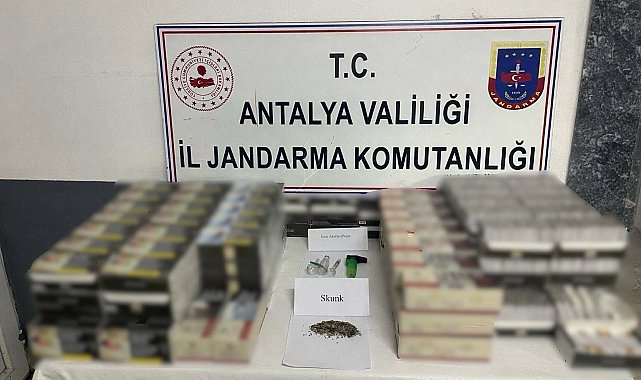 Antalya İl Jandarma Komutanlığı ekiplerince Manavgat ilçesinde düzenlenen uyuşturucu operasyonunda çeşitli miktarlarda uyuşturucu madde ve kaçak ürün ele geçirildi.Antalya İl Jandarma Komutanlığı tarafından yürütülen çalışmalar kapsamında Manavgat Cumhuriyet Başsavcılığı'nın talimatıyla Manavgat ilçesinde uyuşturucuyla mücadeleye yönelik operasyon düzenlendi. Şüpheli M.B.'nin evinde ve iş yerinde yapılan aramalarda 20 gram skunk, 4 adet uyuşturucu içme aparatı, 15 bin 800 adet doldurulmuş makaron, 8 bin 600 adet boş makaron ve 6 bin 250 adet içime hazır tütün ele geçirildi.Olayla ilgili soruşturma başlatıldı.
