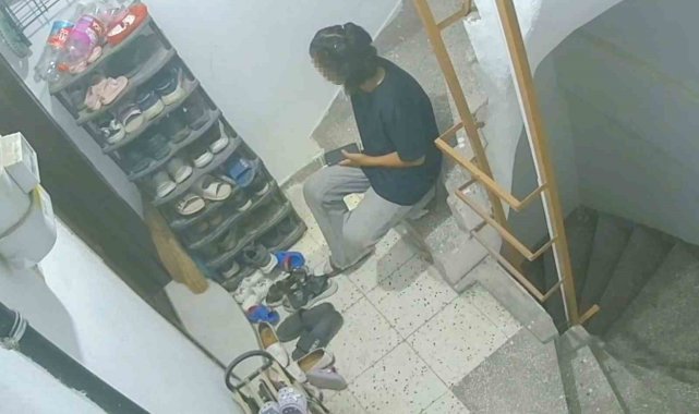 Manisa'da bir apartmanda yaşanan ayakkabı hırsızlığı, güvenlik kamerası tarafından saniye saniye kaydedildi. Gece yarısı meydana gelen olayda, hırsızın rahat tavırları dikkat çekti.