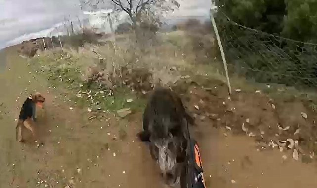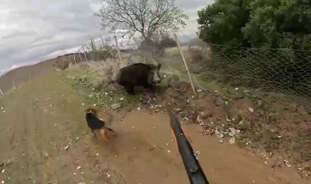Manisa'da domuzun avcıya saldırdığı anlar kameraya yansıdı