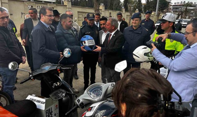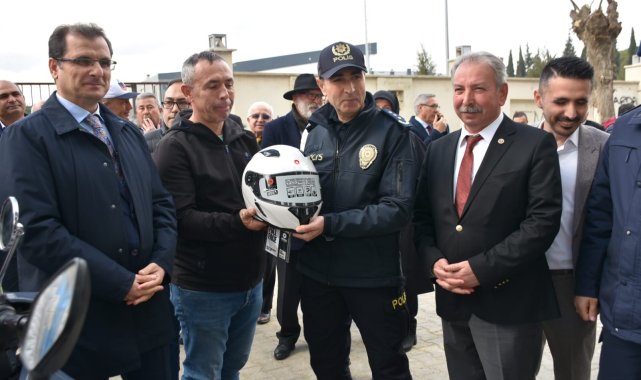 Manisa'da motosiklet sürücülerine kask dağıtıldı