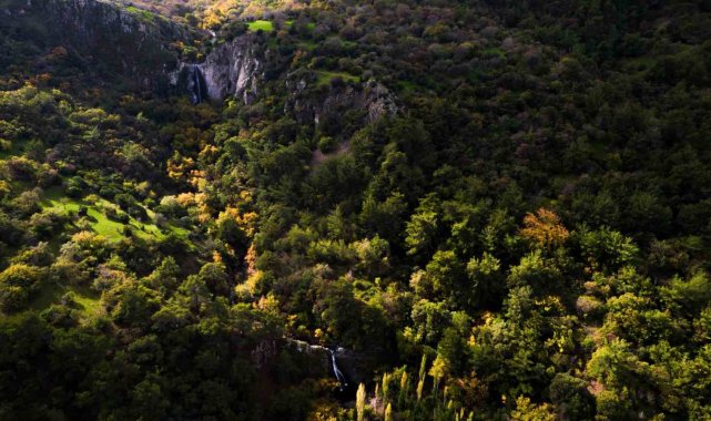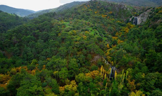 Manisa ve İzmir sınırında yer alan Türkmen Suuçtu Şelalelerindeki sonbahar manzaraları kartpostallık görüntüler oluştururken sarı ve yeşilin iç içe geçtiği şelaleler Karadeniz yaylalarını aratmadı.