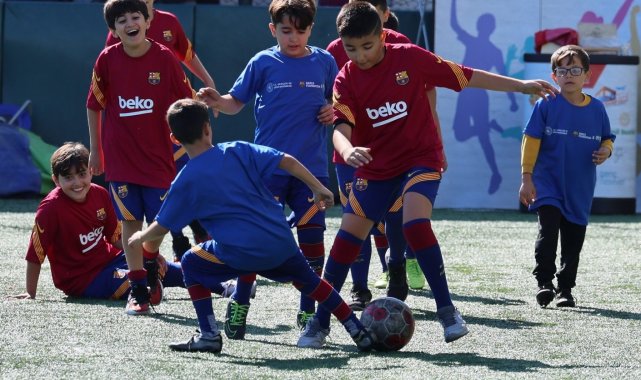 Manisa'da FC Barcelona Barça Vakfı ile Gençlik ve Spor Bakanlığı'nın koordinatörlüğünde, Birleşmiş Milletler Mülteciler Yüksek Komiserliği ortaklığında yürütülen proje ile çocuklara spor eğitimi verildi.