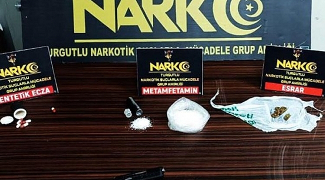 Turgutlu İlçe Emniyet Müdürlüğü Narkotik Suçlarla Mücadele Grup Amirliği ekipleri, alınan istihbarat üzerine dün, bir otele uyuşturucu operasyonu düzenledi. Otelde bir odada yapılan aramada 101 gram metamfetamin, 3,86 gram esrar, 5 sentetik ecza, 1 ruhsatsız tabanca ele geçirildi.