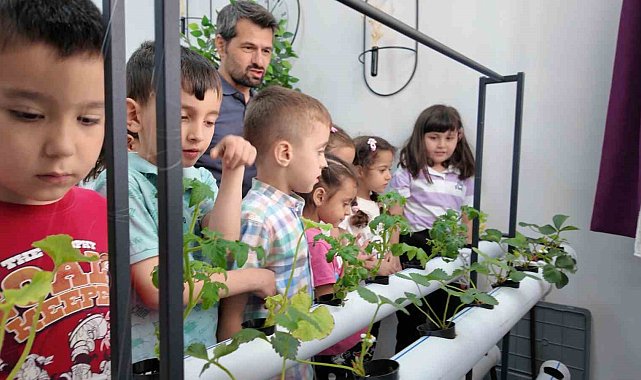Manisa'nın Yunusemre ilçesindeki Türk Kızılay İlkokulu bünyesinde bulunan ana sınıfı öğrencileri hidroponik (topraksız sulu tarım) tarımla ürün yetiştiriyor. Öğrenciler ürünlerin dikiminden hasadına kadar bütün süreci hem yakından izliyor hem de üretim bilinci ile erken yaşlarda buluşuyor. Küçük yaşta tarımsal bilinç kazanan minikler aynı zamanda sabır, sorumluluk gibi erdemlerle de yaşamlarına yön veriyor.