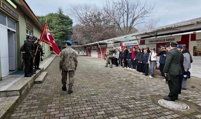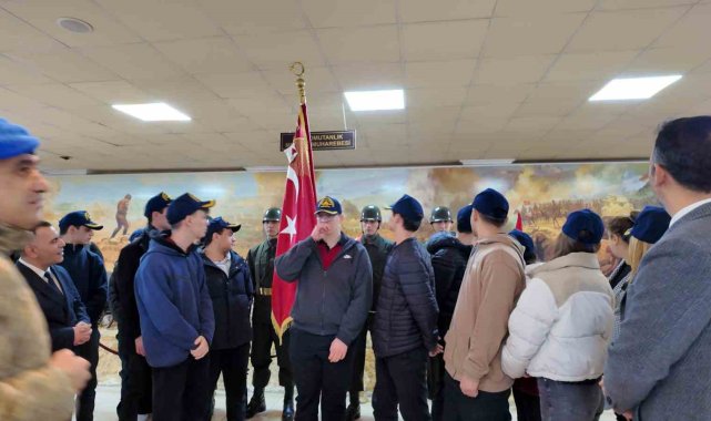 Manisa Sosyal Bilimler Lisesinden bir grup öğrenci, Manisa 8. Komando Eğitim Tugayında muhafaza edilen tarihi Alay Sancağını ziyaret etti.