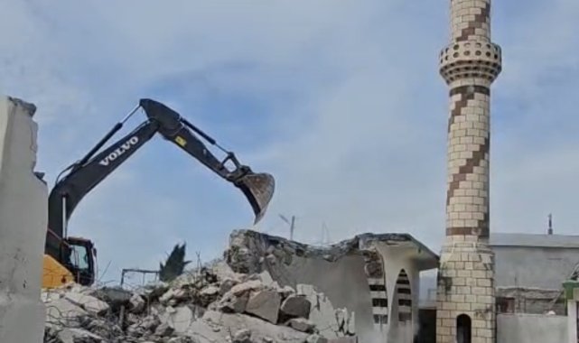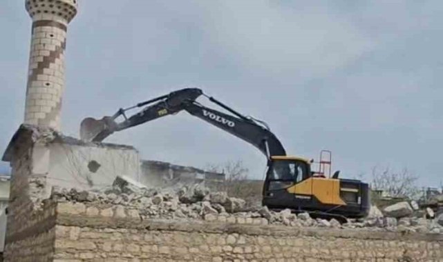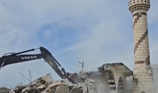Maraş depremlerinde ağır hasar alan cami yıkıldı