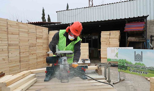Mardin Büyükşehir Belediyesi, park, bahçe, meydan ve yeşil alanlar için çevre dostu, estetik ahşap saksı üretiyor.