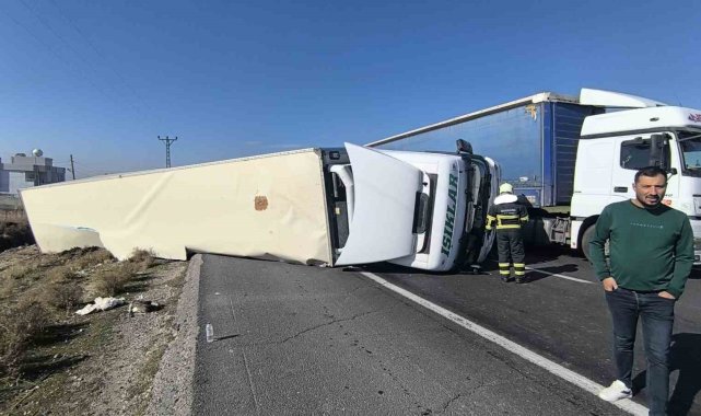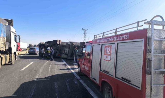 Mardin'in Nusaybin ilçesinde kontrolden çıkan peynir yüklü tırın devrilmesi sonucu meydana gelen trafik kazası maddi hasarla atlatıldı.