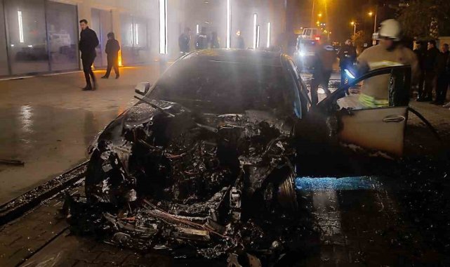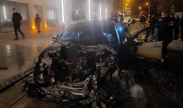 Mardin'in Nusaybin ilçesinde park halindeki lüks otomobil alev alev yandı.