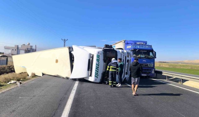 Mardin'de peynir yüklü tırın devrildiği kaza güvenlik kamerasına yansıdı