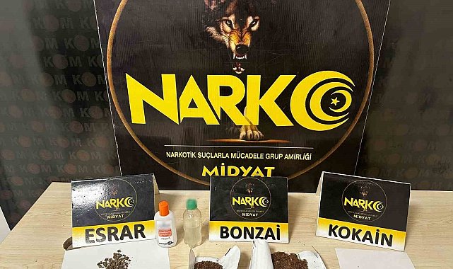 Mardin'de düzenlenen uyuşturucu operasyonunda 3 şüpheli yakalandı.Edinilen bilgiye göre, İl Emniyet Müdürlüğü ekiplerince Midyat ilçesinde 3 şüphelinin üzerinde yapılan kontrollerde 181,27 gram sıvı halde sentetik kannabinoid (bonzai), 48,59 gram sentetik kannabinoid (bonzai), 4,68 gram esrar ve 1,09 gram kokain ele geçirildi. Operasyonda yakalanan 3 şüpheli hakkında adli işlem başlatıldı.İl Emniyet Müdürlüğü'nden yapılan açıklamada, "Vatandaşlarımızın sağlığını, huzurunu ve geleceğini hedef alan zehir tacirlerine asla geçit vermeyeceğiz. Her bir vatandaşımızın güvenliği için gece gündüz sahadayız. Kararlılığımızdan, mücadelemizden ve sorumluluğumuzdan asla geri adım atmayacağız" ifadelerine yer verildi.