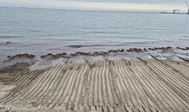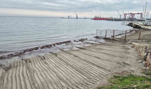 Poyraz fırtınasının ardından Süleymanpaşa kıyılarında oluşan kızıl yosunlar, sahil şeridinde kötü kokuya neden oldu.