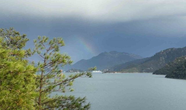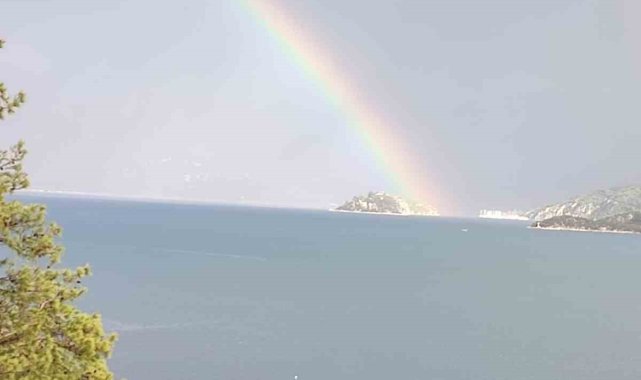 Marmaris'te yağışla birlikte oluşan gökkuşağı mest etti