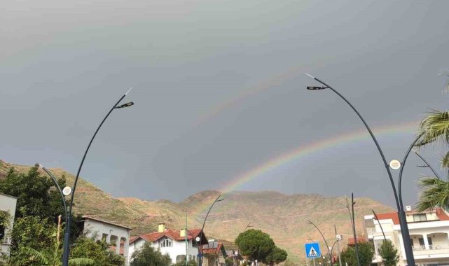 Muğla'nın Marmaris ilçesinde sağanak yağış esnasında çıkan gökkuşağı izleyenleri mest etti.