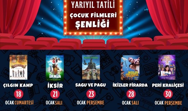Marmaris Belediyesi, 2024-2025 eğitim ve öğretim yılının ilk yarısını tamamlayan öğrenciler için ücretsiz film gösterimi yapacak.Marmaris Belediyesi, 17 Ocak Cuma günü yarıyıl tatiline giren öğrenciler için ücretsiz sinema program hazırladı. Programda 5 film yarıyıl tatili boyunca çocuklarla buluşacak. Etkinlikler kapsamında 18 Ocak Cumartesi günü Çılgın Kamp, 21 Ocak Salı günü İksir, 23 Ocak Perşembe günü Sagu ve Pagu, 28 Ocak Salı günü İkizler Firarda ve 30 Ocak Perşembe günü de Peri Kraliçesi filmleri gösterilecek. Filmlerin Armutalan Kültür Merkezi'nde 13.00 ve 15.00 saatlerinde iki seans halinde gösterimi olacak. Yarıyıl şenliğine tüm çocukları davet eden Marmaris Belediye Başkanı Acar Ünlü, "Çocuklarımız yoğun bir ders döneminin yorgunluğunu atması ve ikinci yarıyıla dinlenerek girmesi için eğlenceli ve keyif dolu bir etkinlik düzenledik. Film gösterimlerine tüm çocuklarımızı bekliyor, hepsine iyi tatiller diliyorum" dedi.