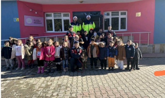 Sivas'ta anaokulu öğrencilerine jandarmanın görevlerini anlatıldı. Çizgi film izleyen çocuklar Mayın arama köpeği 'Türlü' ile de vakit geçirdi.