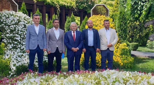 Kayseri Büyükşehir Belediye Başkanı Dr. Memduh Büyükkılıç, gönül belediyeciliği kapsamında merkezde ve kırsalda ‘uç beyi’ olarak nitelendirdiği muhtarlarla bir araya gelmeye devam ediyor. Bu kapsamda, 4 muhtar, Başkan Büyükkılıç’a nezaket ziyaretinde bulundu.Ziyaretten duyduğu memnuniyeti dile getiren Büyükkılıç, ilçelerde dokunmadık alan bırakmayıp, en ücra köşesine hizmet götürüp, mahalle muhtarlarının sık sık taleplerini, önerilerini dinlediklerini ifade etti.Dayanışma içerisinde muhtarlarla birlikte vatandaşlara hizmet etmeye devam edeceklerini söyleyerek, birlik ve beraberlik mesajı veren Başkan Büyükkılıç, “Yüzevler Mahalle Muhtarı Yasin Süt, Reşadiye Mahalle Muhtarı Yusuf Çelik, İbrahimağa Mahalle Muhtarı Mustafa Medeni ve Camicedit Mahalle Muhtarı Kamil Özkan belediyemizi ziyaret etti. Her manada uyum içerisinde çalıştığımız muhtarlarımıza ziyaretleri için teşekkür ediyorum” diye konuştu.Muhtarlar da ilgi alakası, hizmetleri ve muhtarlara verdiği özel önemden dolayı Başkan Büyükkılıç’a teşekkür etti. Samimi bir ortamda gerçekleşen ziyaretin ardından Büyükkılıç, muhtarlarla hatıra fotoğrafı çektirdi.