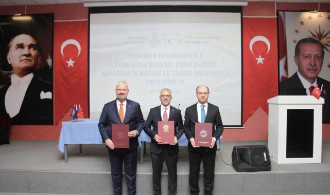 Ankara temaslarının ardından sosyal medya hesabından açıklama yapan Menemen Belediye Başkanı Aydın Pehlivan, ilçeye ikinci üniversitenin kazandırıldığını açıkladı. Pehlivan, "Türk Hava Kurumu Üniversitesi ile iş birliği ve tahsis protokolü imzaladık. ilçemizde; eğitim, bilim ve teknoloji alanında yeni bir döneme daha adım atıyoruz" dedi.Eğitime yaptığı büyük yatırımlarla dikkat çeken Menemen Belediyesi, ilçedeki yükseköğretimin bir adım daha öne çıkması için önemli bir anlaşmaya imza attı. Menemen Belediye Başkanı Aydın Pehlivan'ın girişimleriyle Türk Hava Kurumu Üniversitesi'nin bazı bölümlerinin ilçede Kubilay Kültür Merkezi binasında eğitim vermeye başlaması kararı alındı.Menemen Belediyesi ve Türk Hava Kurumu Üniversitesi arasındaki tarihi iş birliğinin imzaları Ankara'da atıldı. Menemen Belediye Başkanı Aydın Pehlivan, Türk Hava Kurumu Kayyum Heyeti Başkanı Prof. Dr. Akın Ünal ve Türk Hava Kurumu Üniversitesi Rektörü Prof. Dr. Rahmi Er'in nihai imzalarını attığı dev protokolle birlikte, ilçedeki üniversite sayısı ikiye çıktı."Bugün birlikte başardık"İmzalanan protokolü sosyal medya hesabından "Menemen'imize büyük müjde" başlığıyla duyuran Menemen Belediye Başkanı Aydın Pehlivan şu ifadeleri kullandı: "İlçemizin ikinci üniversitesi için imzalar atıldı. Kırmızı çizgimiz olan eğitimde bir eşiği daha aştık ve Menemen Belediyemiz ile Türk Hava Kurumu Üniversitesi arasında iş birliği ve tahsis protokolü imzalayarak, ilçemizde; eğitim, bilim ve teknoloji alanında yeni bir döneme adım atıyoruz. Türk Hava Kurumu Kayyum Heyeti Başkanı Hocamız Prof. Dr. Sn. Akın Ünal ve Rektör Hocamız Prof. Dr. Sn. Rahmi Er ile birlikte attığımız bu imza, sadece bugünü değil, Menemen'imizin yarınlarını da şekillendirecek güçlü bir vizyonun göstergesidir. Bu süreçte desteklerini bizlerden esirgemeyen AK Parti Genel Sekreterimiz ve İzmir Milletvekilimiz Eyyüp Kadir İnan'a, İl Başkanımıza, kıymetli milletvekillerimize, THK Menemen Şube Başkanı Sn. Hilmi Kurtoğlu'na şahsım ve hemşehrilerim adına teşekkür ediyorum. Türkiye'nin en refah, en gelişmiş, en güzel ilçesi olmak adına çıktığımız bu yolda Menemen büyüyor, gelişiyor, geleceğe emin adımlarla ilerliyor. Mesele birlikte olmak, birlikte başarmak dedik; bugün birlikte başardık."
