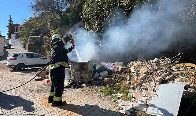 Menteşe'nin Saburhane Mahallesi'nde çöp konteynerinde çıkan yangın, Muğla Büyükşehir Belediyesi itfaiye ekiplerinin hızlı müdahalesiyle söndürüldü.