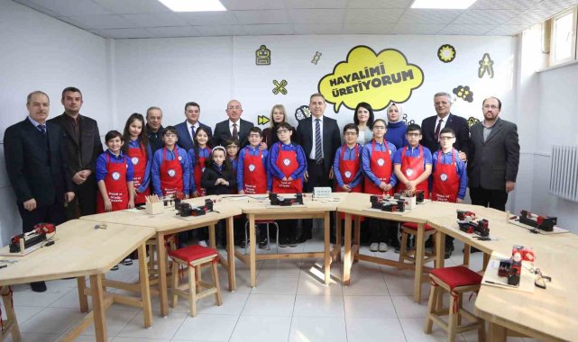 Konya'nın Meram İlçe Kaymakamı Bayram Yılmaz ve Meram Belediye Başkanı Mustafa Kavuş, İhsan Özkaşıkçı İlkokulu 'Tasarım Beceri Atölyesi'nin açılışında öğretmen ve öğrencileri yalnız bırakmadı.