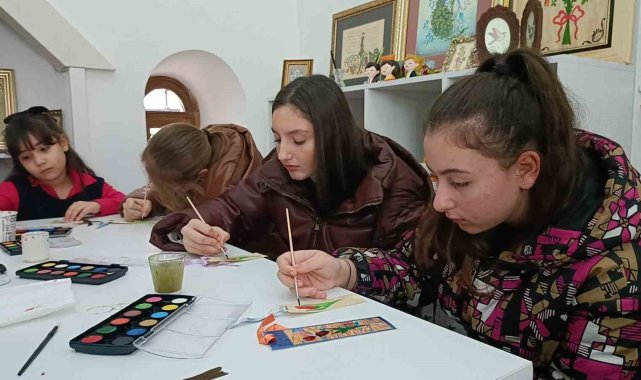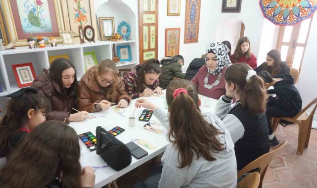 Edirne'nin Meriç ilçesinde kaymakamlık himayelerinde başlatılan 'Ara Tatil Kampı-Kültürümüzün İzinde Projesi' çerçevesinde kente gelen öğrenciler, Edirnekari sanatını öğrendi.